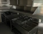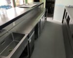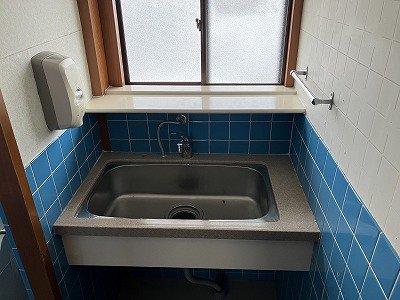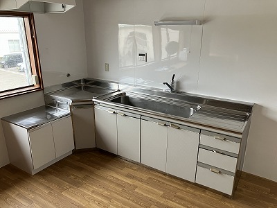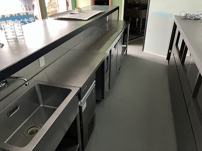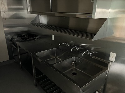 公営水道、公共下水、トイレ、プロパンガス、エアコン、カウンター、グリストラップ、一部厨房機器、看板設置スペース、洗面台、浴槽、収納棚、ソファー、換気扇、照明設備